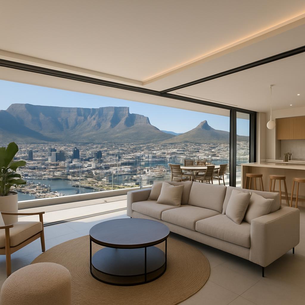Skyline penthouses with Table Mountain and ocean vistas, private elevators, wraparound terraces, designer furnishings, fast Wi-Fi, and generators. Walkable to galleries, dining, and business districts, with optional chauffeur, chef, housekeeping.